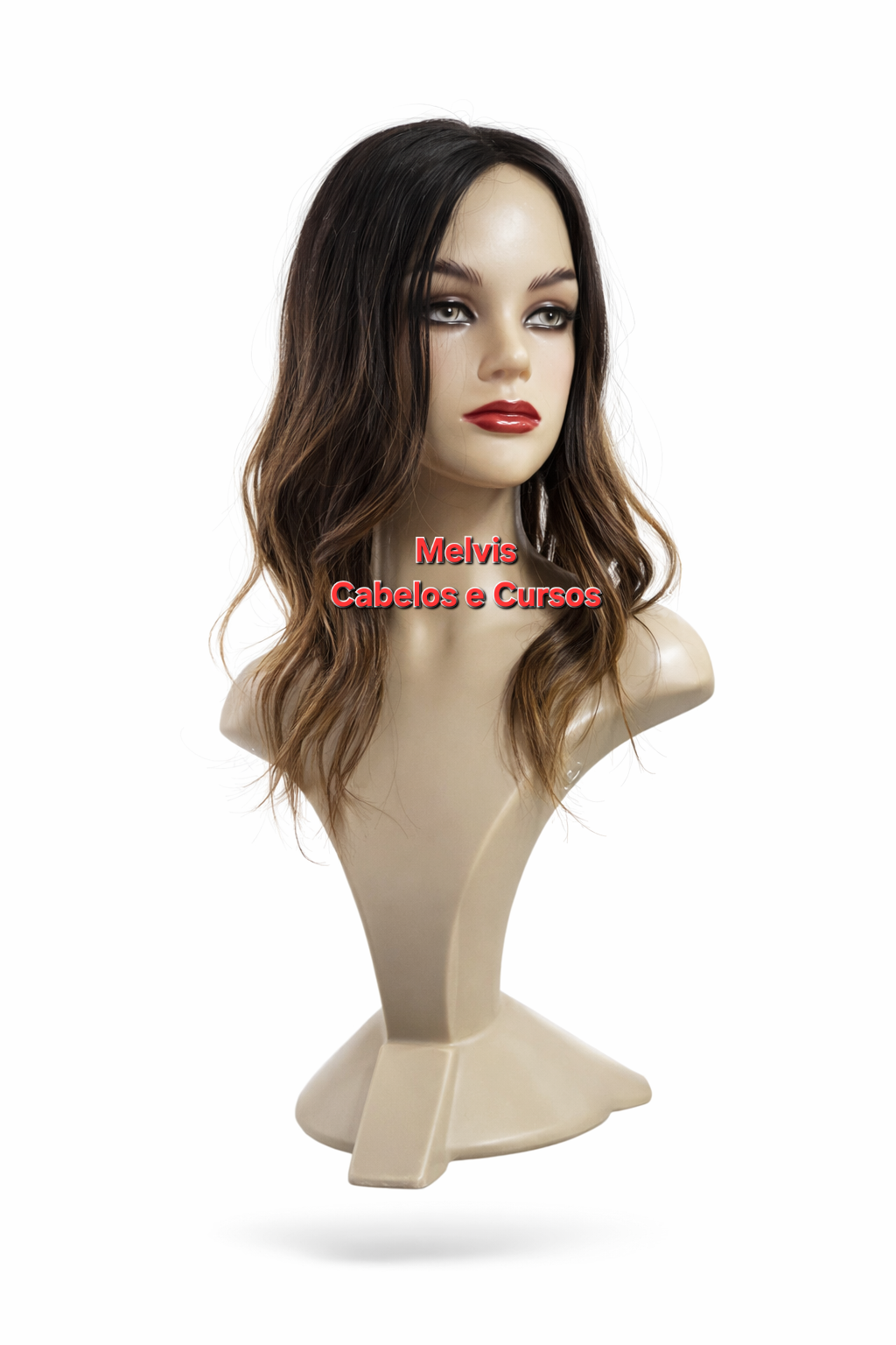 Topo 12cm x 15cm – Cabelo Humano Castanho Médio morena iluminada “LISO” 40cm